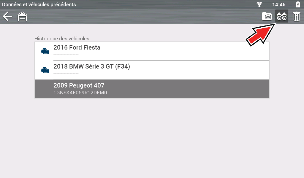 Sélectionnez le véhicule (mettez-le en surbrillance) dans la liste.