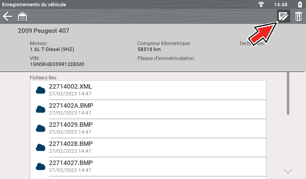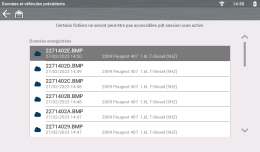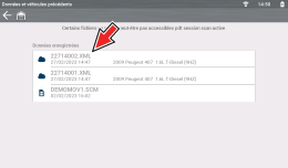 Les scan code du véhicule et les scan code du système unique sont enregistrés sur l’outil au format de fichier (.XML). Dans la liste, sélectionnez le fichier que vous voulez consulter.