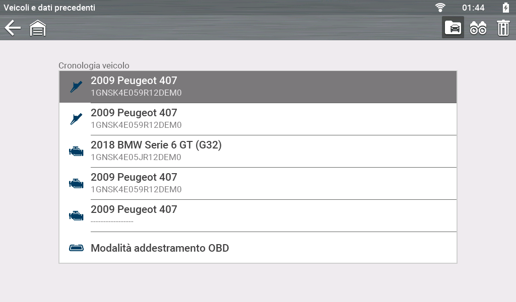 Selezionare (evidenziare) il veicolo nell'elenco.