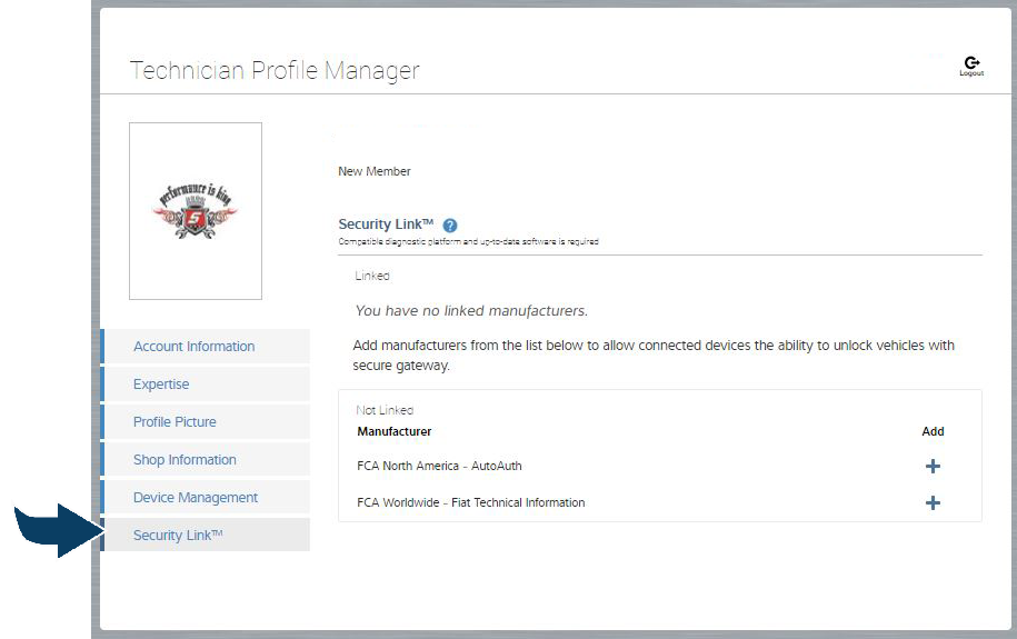 The Snap-on Profile Manager is where you manage all your companion Snap-on application accounts (e.g. Security Link, and Snap-on Cloud).
