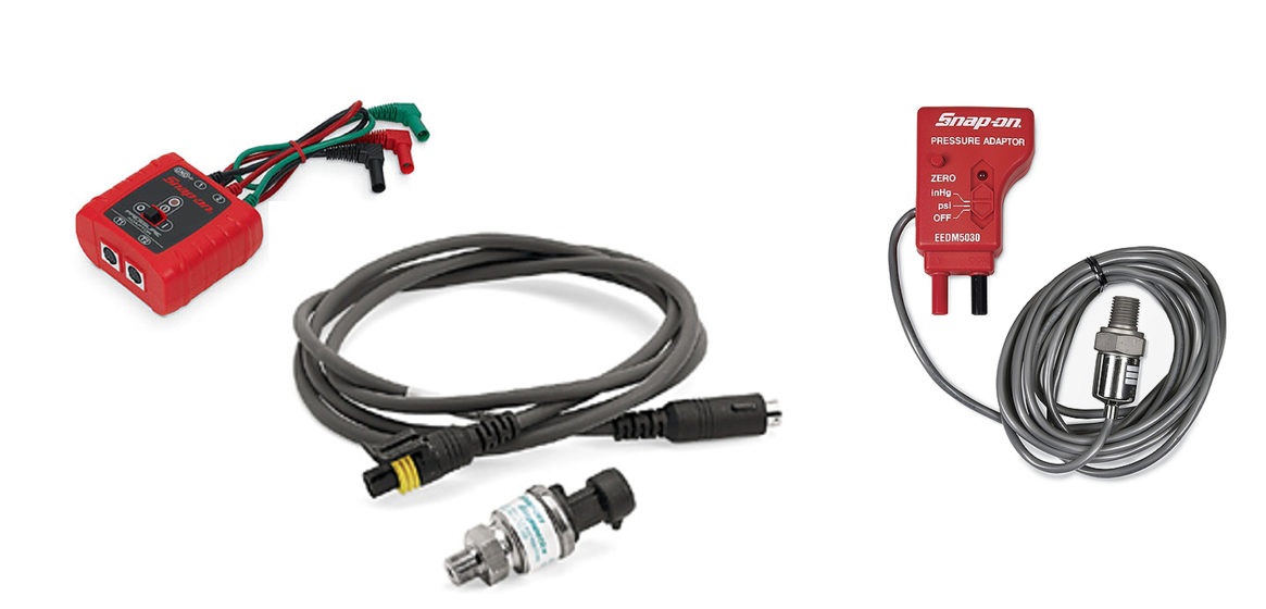 This feature is only applicable with diagnostic tools that are equipped with a Scope/Meter (e.g. TRITON Family, MODIS Family, etc). Different pressure transducers and adapters are available for measuring positive and negative gas and liquid pressures. Depending on the adapter, measurement capabilities range from 1 to 5000 psi and up to 29 inHg. Measurement and application capabilities vary per device. Visit your Snap-on website store, or contact your Snap-on representative. |