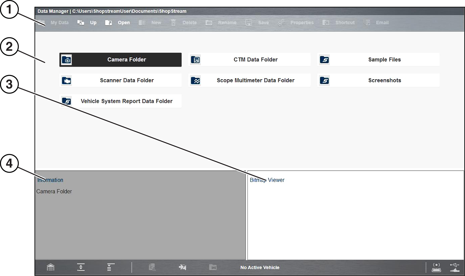 | ● | Vehicle System Report Data Folder—contains saved vehicle code scan reports. |