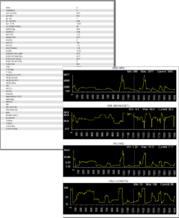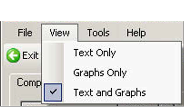 | ● | Text and Graphs—shows all parameters and their values as text in the left panel of the screen, and shows them as graphs in the right panel of the screen |