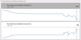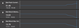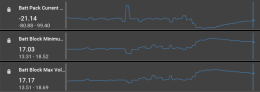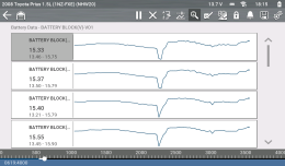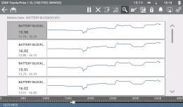The image above shows the voltage for four battery blocks under hard acceleration, this results in noticeable voltage drop on each block. All fourteen blocks should return a similar voltage under all conditions, full electric mode, hard acceleration and regenerative braking.