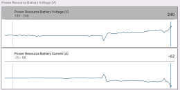 The image above shows the voltage for four battery blocks under regenerative braking, this results in voltage increase on each block.
