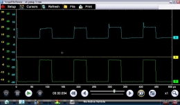 The oscilloscope waveforms below are from a vehicle and can be used to identify the control of each phase during normal operation. These images match the table above.