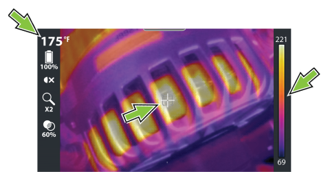 | Thermal Imager | Temperature Measurement Range: -20 to 450 °C (-4 to 840 °F) |