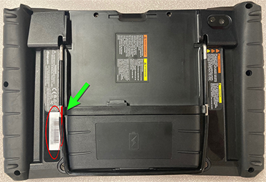 The diagnostic tool serial number is displayed on the Get Connected screen. Typical Navigation = Home Screen > System Settings > Get Connected The diagnostic tool serial number is also located on the back of the diagnostic tool housing. |