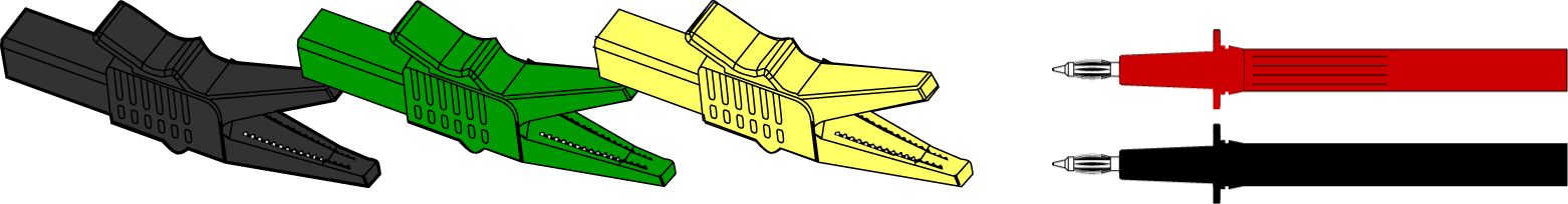 Leads and probes are supplied with your diagnostic tool. Their recommended connection is as follows. The shielded yellow lead is used with channel 1, and is color matched with the channel 1 jack on the diagnostic tool. This lead also includes two black, right-angle common ground plugs. One plug is standard and the other is stackable. The standard ground plug should always be connected to the ground (GND) jack on the diagnostic tool. The stackable ground plug is used for connecting additional ground leads, such as the Channel 2 or the Secondary Coil Adapter lead grounds. The stackable ground lead is internally connected to the standard ground lead, therefore it does not need to be connected to the diagnostic tool ground jack. The shielded green lead is used with channel 2, and is color matched with the channel 2 jack on the diagnostic tool. This lead also includes a black, right-angle stackable ground plug. Insulated alligator clips and probes (pointed type) can be attached to the end of the test leads. Each alligator clip is color matched with a test lead, and the probes are available in red and black. Visit your Snap-on website store, or contact your Snap-on representative. |