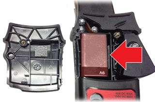 An optional Low Amp Current Probe is used measure AC or DC current up to 60A. This probe includes two scales (0 to 20A) and (0 to 60A) that can be used to provide accurate and reliable non-intrusive current measurement for components such as, ignition coils, fuel injectors, fuel pumps, relays, and electric motors. Visit your Snap-on website store, or contact your Snap-on representative. Battery Replacement The RED LED flashes when the minimum operating voltage is approached, indicating that the battery needs to be replaced. When replacing the battery, use the 9-volt alkaline type only. Using any other type of battery in the Snap-on Low Amp Current Probe will invalidate your warranty. To replace the battery:
