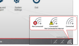 After bootup you can check if Wi-Fi is connected, by looking for the Wi-Fi indicator in the System Tray (lower right side), or in the Diagnostic Suite lower toolbar.