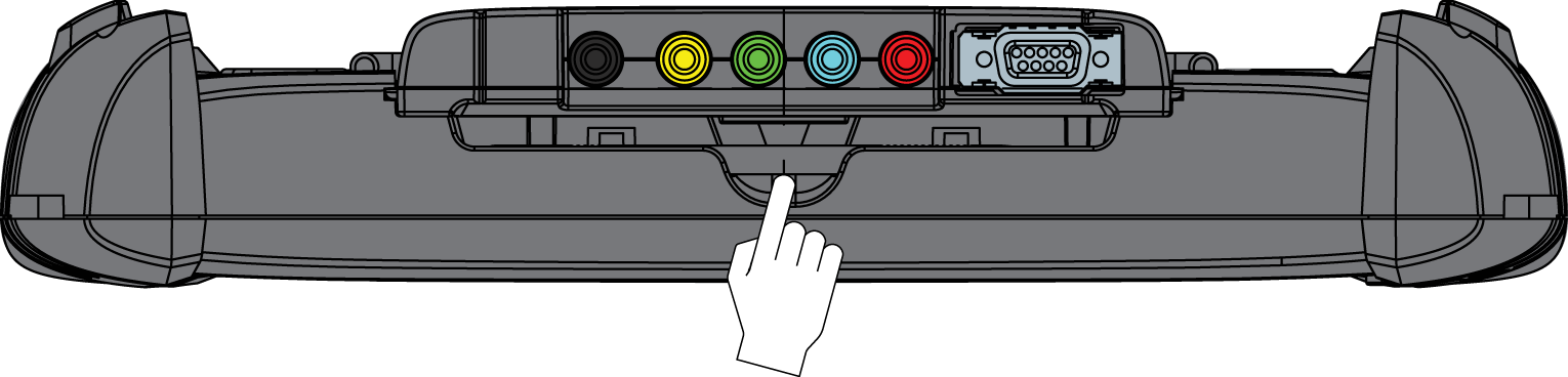 In situations where the testing connection points are not easily accessible, the Scope Module easily separates from the diagnostic tool (connected via extended length USB cable) allowing you to monitor the results remotely. This increases the range of mobility for the diagnostic tool while monitoring signals on the test vehicle. Use the Type A/B USB cable, which is provided with your kit, to make the connection. When used remotely, the scope module must be connected to the lower (black) USB jack on the diagnostic tool. As general practice, the Scope Module should only be undocked from the diagnostic tool when it is off. To prevent accidental loss of data, make it a practice to first save the current data if desired, then select either the Power Off or Back icon from the Scope Multimeter toolbar to stop meter operation. Power Off saves the current settings, but does not save data. If the Scope Module: