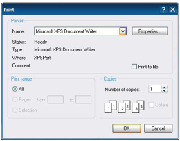 Selecting Print opens a standard Windows Print dialog box. If you have already installed a printer, select it and choose print. To print, a printer must installed and set as the system (Windows) default printer. For data and files that are automatically sent to the Snap-on Cloud, you can print them using your PC or mobile device from the Snap-on Cloud. For additional information, see the Printer section inside the Windows (Applicable Features / Operations) section in the user manual, or see online Windows Support Information. |