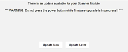 The internal programming (firmware) of the CSM may require periodic updates. Firmware updates increase the CSMs diagnostic capabilities; typically by adding support for new tests, vehicles, and enhanced applications to the vehicle databases. CSM firmware updates (when available) are delivered with diagnostic software updates/upgrades. Upon starting the Scanner function, initially after a software update or upgrade has been installed, a message may be displayed to inform you an update is available. When performing a firmware update it is recommended to disconnect the CSM from the vehicle (if connected) and use the supplied USB cable to connect the CSM to the diagnostic tool. Firmware update message The firmware update process, as explained in the following procedure, begins automatically after ten seconds (only when connected by USB) unless Update Now or Update Later is selected. Selecting Update Now begins the process immediately. Update Later defers the operation, closes the message, and starts the Scanner function. If you choose not to perform the update, it will not affect diagnostic tool operation, however you will not benefit from the additional features available in the update. Selecting Details in the upper-right corner opens a list of what is included in the update. Updating CSM Firmware The diagnostic tool must be connected and powered by the AC power supply during the CSM firmware update process. Damage can occur to the CSM if the diagnostic tool power is turned off, the power supply is disconnected, or the diagnostic tool looses communication (out of range) with the CSM during the firmware update process.