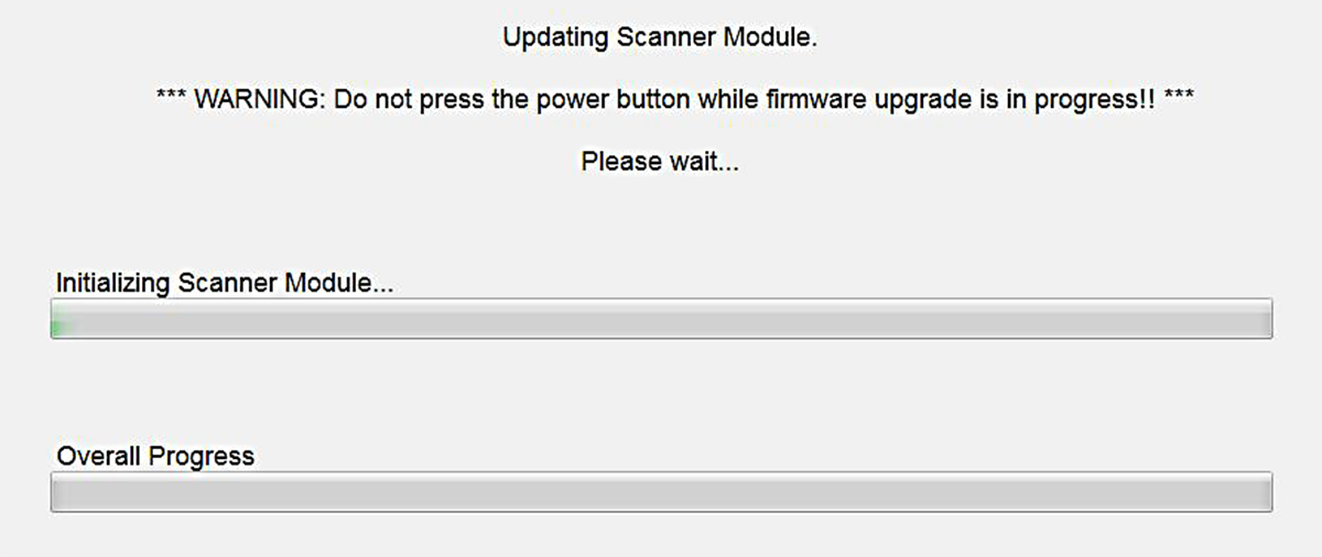 The update begins and installation progress is tracked on the screen. Sample update in progress screen A “Successfully Updated” message displays once the installation process is complete . Sample firmware update complete message