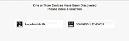 The diagnostic tool searches for compatible wireless devices, then displays the results. Search results include all compatible wireless devices detected, and may include multiple Scan Modules if you are in a shop environment where more than one unit is powered on. Available module listings include a partial serial number. Make sure the screen listing matches the last six digits of the serial number of your CSM before continuing.
