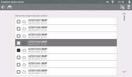 É exibida uma lista de todos os arquivos de dados salvos e imagens da tela que estão armazenados na memória. Selecione o arquivo na lista para visualizá-lo.