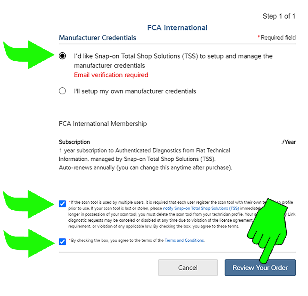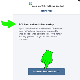 Assinar as soluções Snap-on Total Shop (veja abaixo). Snap-on Total Shop Solutions configurará e gerenciará sua conta FCA International Security Link para você. |