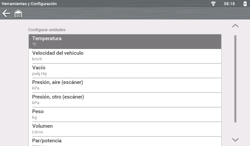 Tools > Settings > Configure Scanner > Graph Scale (Herramientas > Configuración > Configurar escáner > Escala de gráficos)