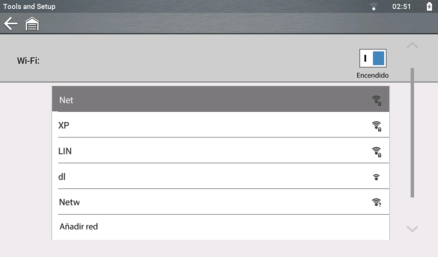 | 2. | Active el Wi-Fi y seleccione una red. |