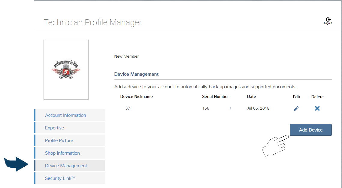 Debe vincular la herramienta de diagnóstico (Agregar dispositivo) a su perfil técnico de Snap-on para usar las aplicaciones como Snap-on Cloud y Security Link.