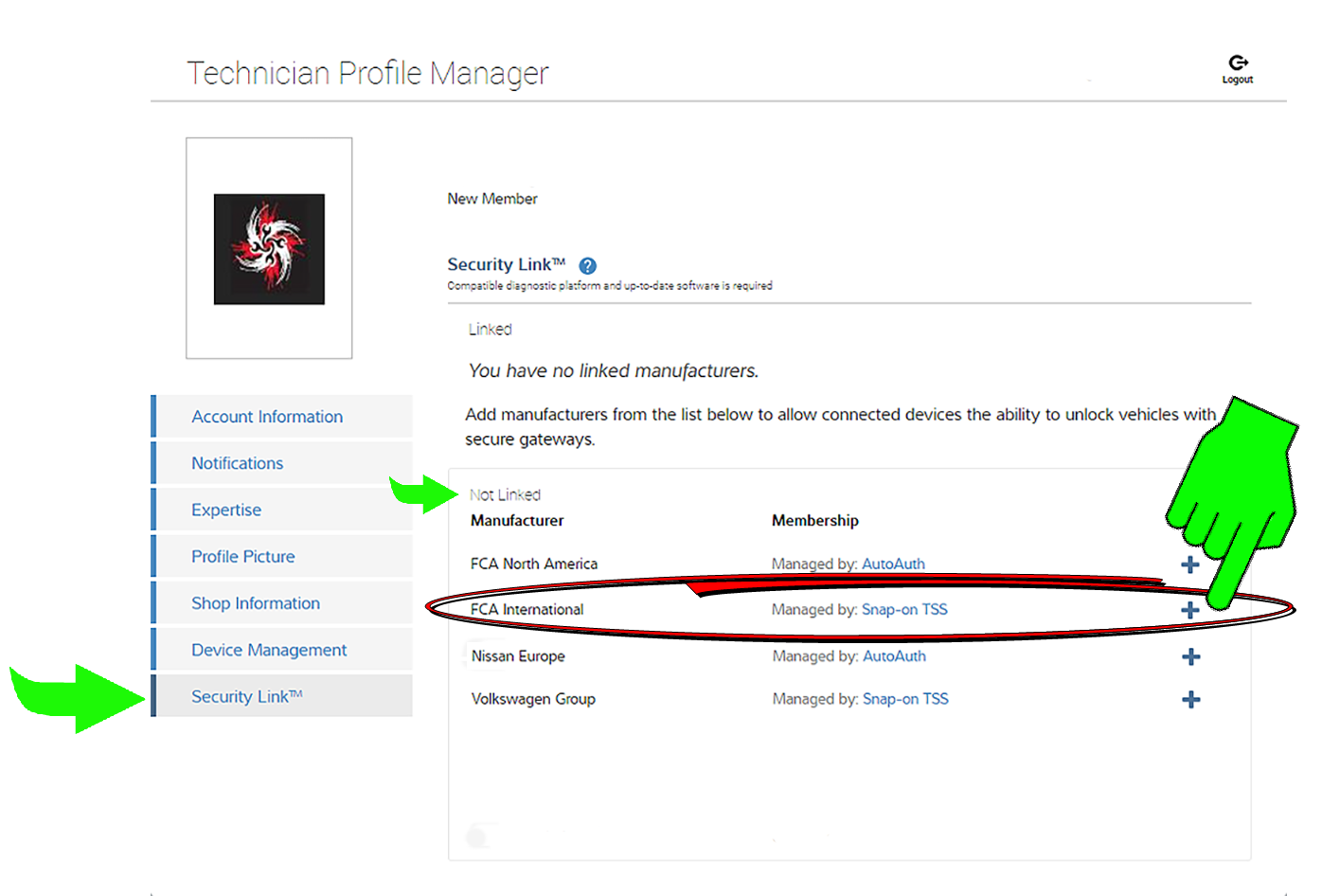 Suscríbase a Snap-on Total Shop Solutions (ver más abajo). Snap-on Total Shop Solutions configurará y administrará su cuenta FCA International Security Link por usted. |