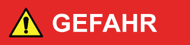 Zeigt eine unmittelbar drohende gefährliche Situation an, die zu schweren Verletzungen oder sogar zum Tode des Benutzers oder umstehender Personen führt, wenn sie nicht vermieden wird.