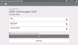 Wenn die Fahrzeugidentifikationsnummer ausgelesen wird, ertönt ungefähr sechs Sekunden nach dem Start ein Piepton. Wählen Sie OK, um fortzufahren.