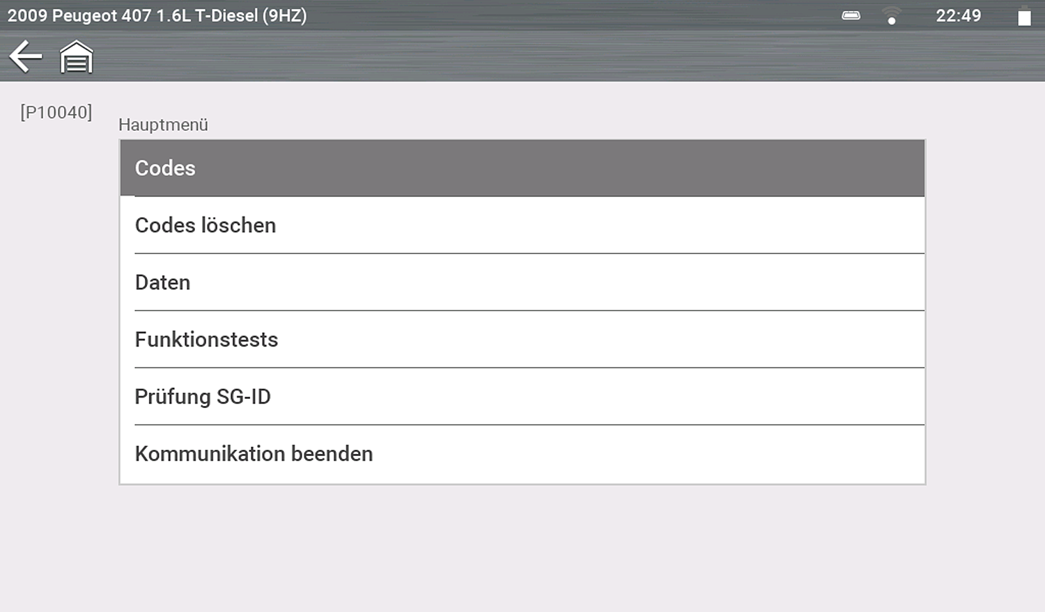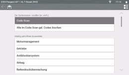 | 7. | Wählen Sie eine Prüfung/Funktion (z. B. Codemenü), die für das Fahrzeugsystem durchgeführt werden soll. |
