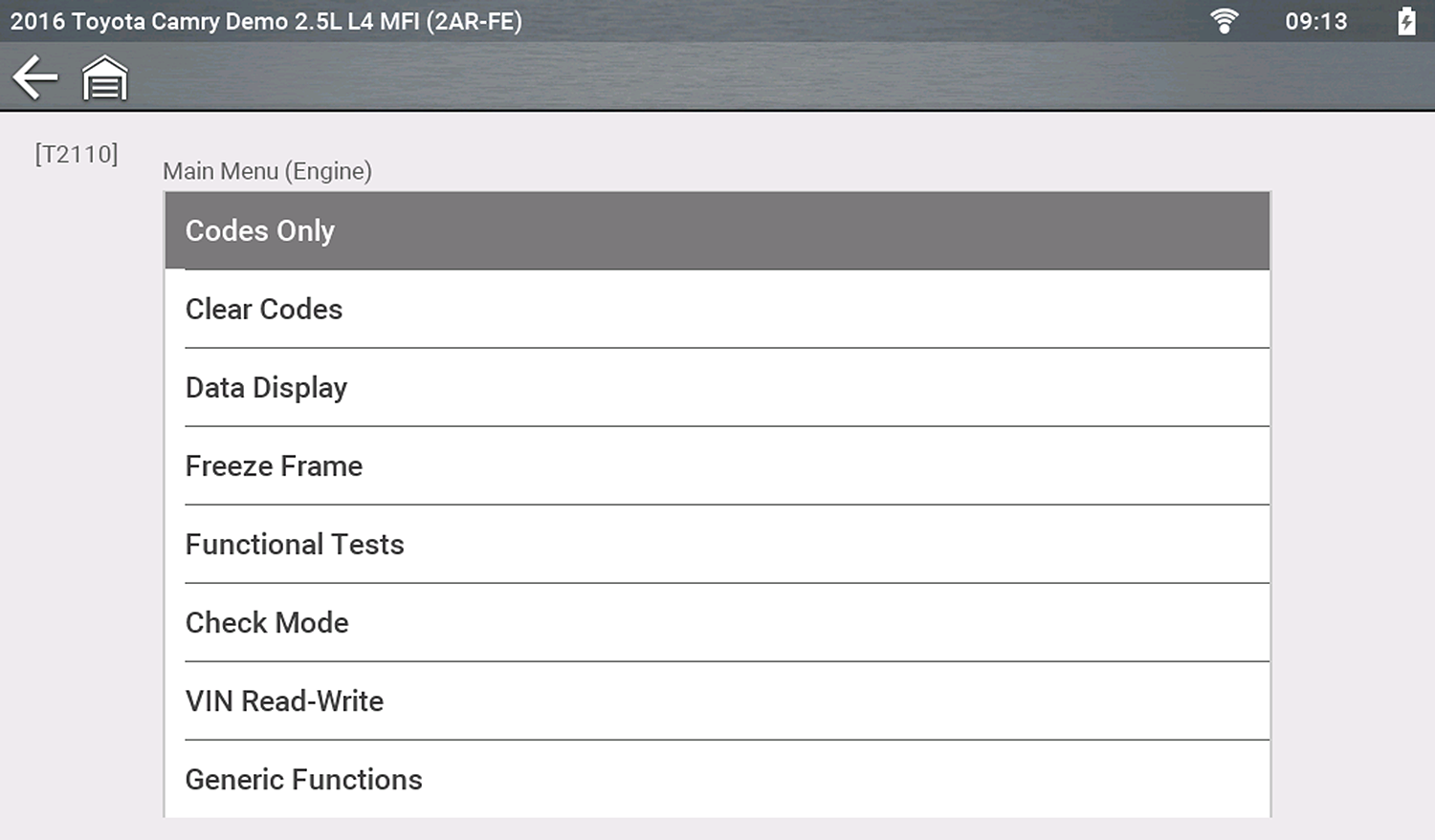 | 7. | Select a Vehicle System Test/Function (e.g. Codes Menu) to perform. |