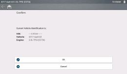 | 4. | Follow the screen prompts to complete the vehicle identification process, then select OK to continue. |
