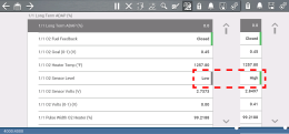 | ● | A red marker line is displayed on the graph of the PID with the activated trigger to indicate where the trigger occurred. A green marker line is displayed on all the other PID graphs to indicate their relationship to where the trigger occurred. |