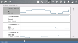 | ● | A vertical gray marker is displayed on all PIDs, indicating where the data was paused . If Pause occurred more than once, gray markers will be used for each instance. |