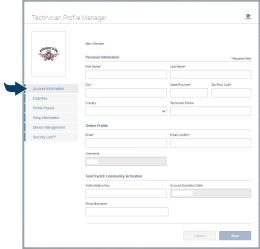 El perfil técnico incluye las categorías con pestañas (vea a continuación) para poder administrar su información: