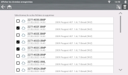 Les scan code du véhicule et les scan code du système unique sont enregistrés sur l’outil au format de fichier (.XML). Dans la liste, sélectionnez le fichier que vous voulez consulter.