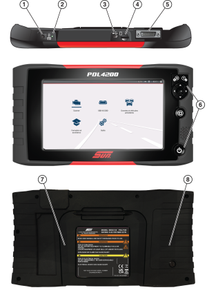 Quatre boutons-poussoirs de commande et un bouton multidirectionnel à molette sont situés sur le côté droit de l’outil de diagnostic. Toutes les autres fonctions de l’outil de diagnostic sont contrôlées par le biais de l’écran tactile.