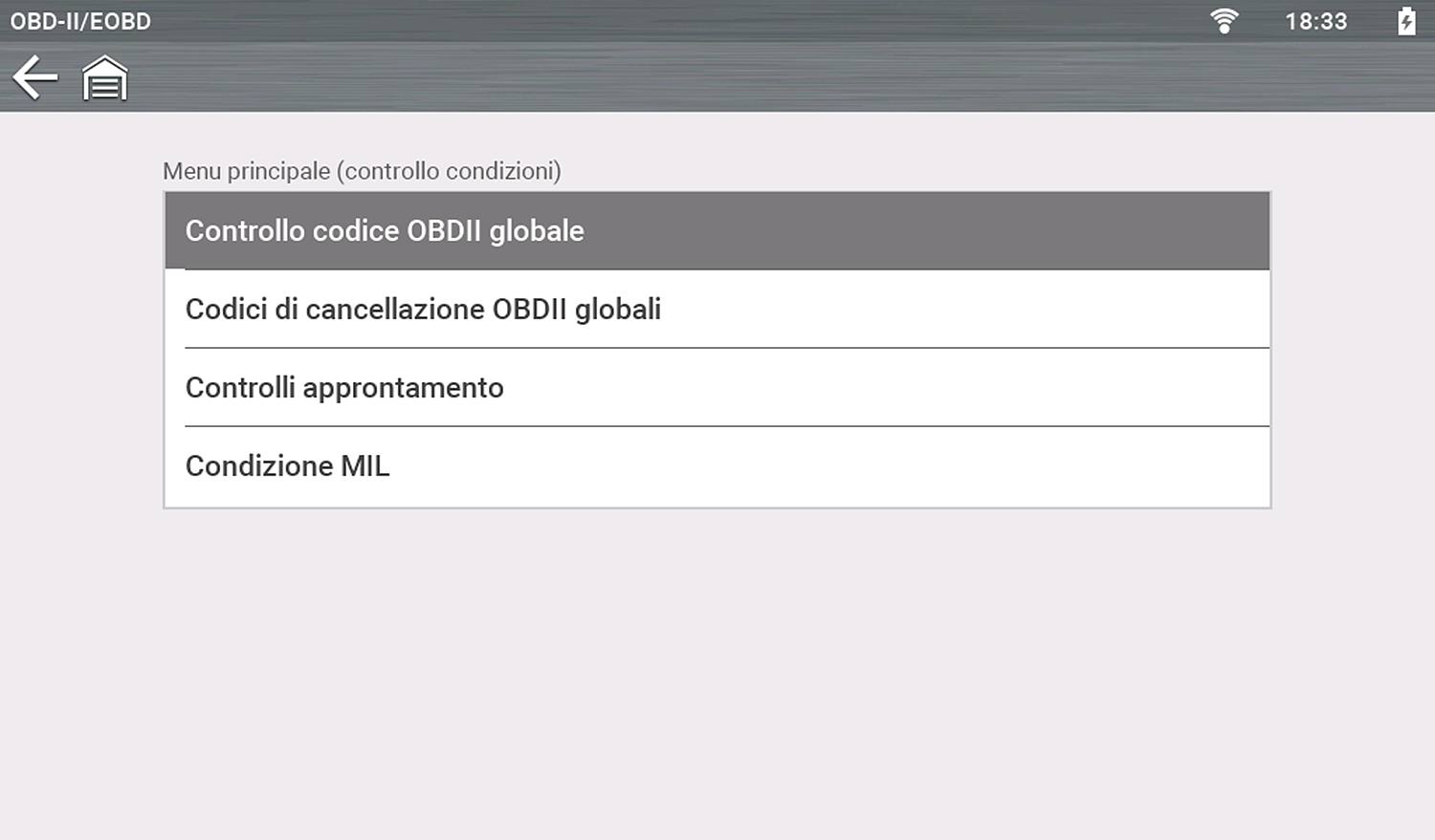 L'icona OBD-II/EOBD si trova sulla schermata iniziale. La funzione consente di accedere ai dati OBD-II/EOBD "globali".