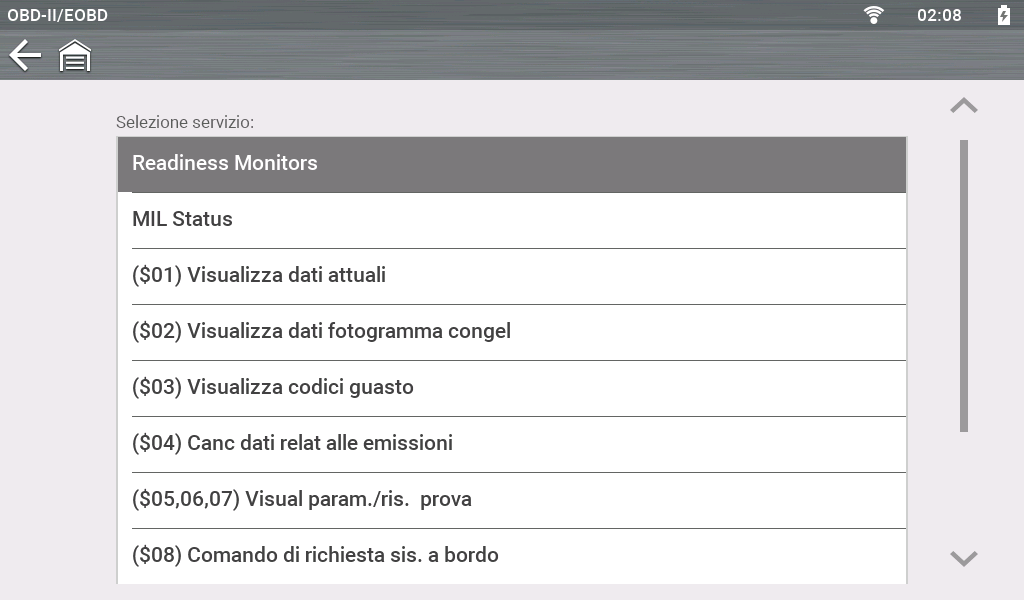 La funzione OBD-II/EOBD serve anche per accedere ai dati OBD-II/EOBD "generici" per i veicoli compatibili OBD-II/EOBD non inclusi nei database della funzione scanner.
