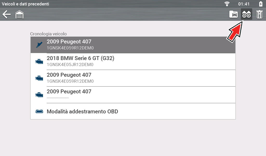Selezionare (evidenziare) il veicolo nell'elenco.
