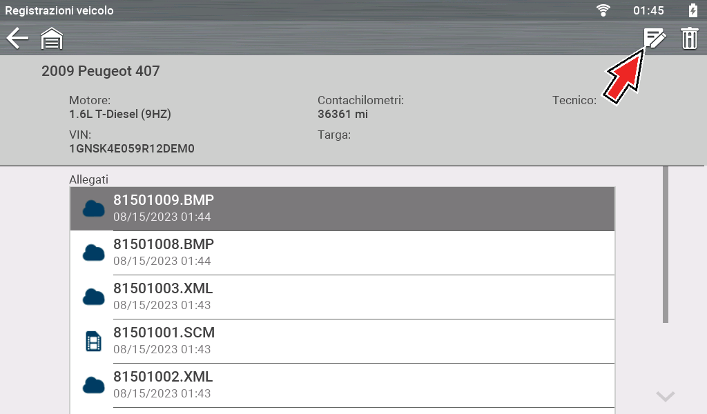 per visualizzare le informazioni del veicolo e, se necessario, selezionare l'icona di modifica