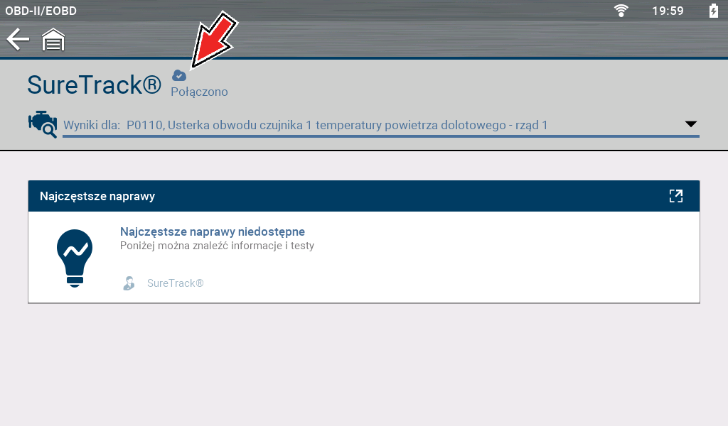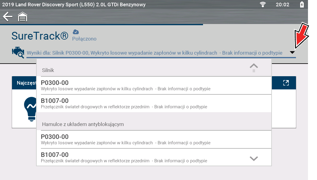 Jeśli dla wybranego kodu usterki DTC są dostępne informacje funkcji SureTrack®, mogą być również dostępne dodatkowe informacje dotyczące rozwiązywania problemów (np. wykres najczęściej stosowanych napraw, przypadki rzeczywistych napraw i Troubleshooter).