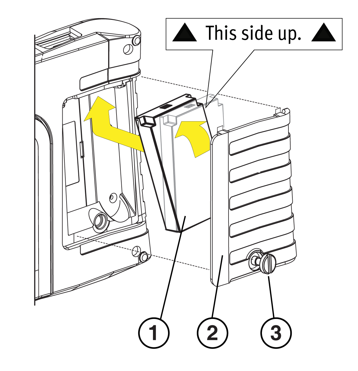 | 1. | Remove the battery cover and install the supplied battery pack with the arrows facing up, then reinstall the cover. |