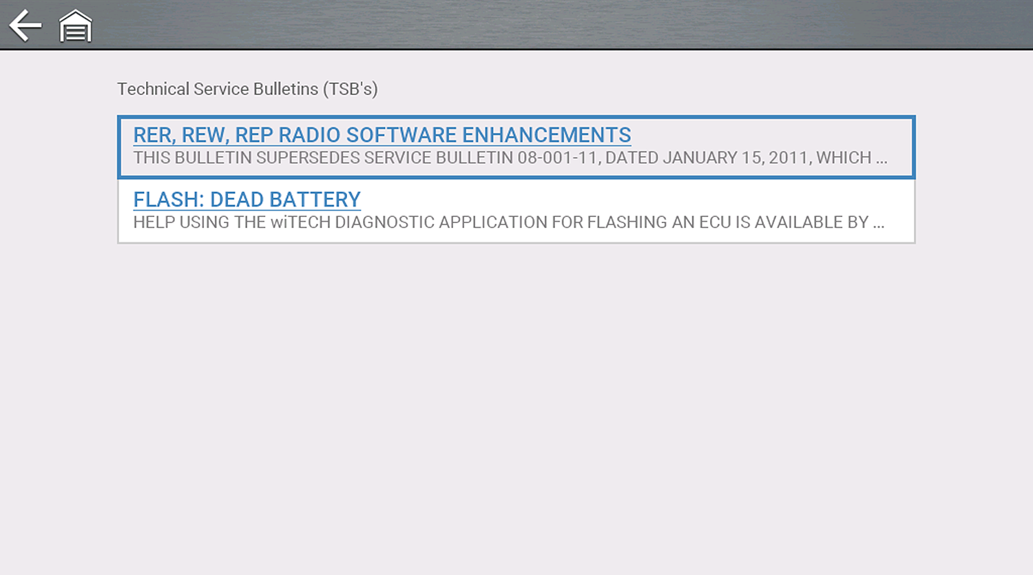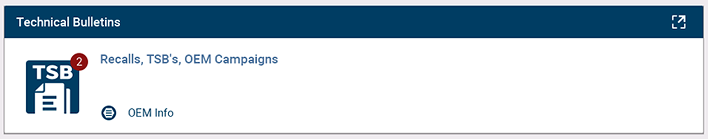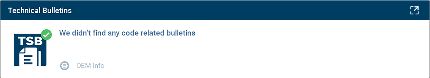 The Technical Bulletins card provides a quick link to available OEM Recall, TSB and Campaign information that is code related.
