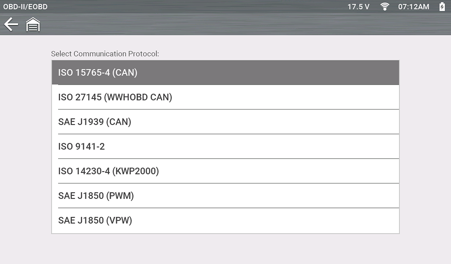 When initializing communication with the ECM the diagnostic tool attempts to communicate trying each protocol to determine which one is being used. During normal operation the communication protocol is automatically detected. If automatic detection fails, communication protocol can be manually selected using this option.