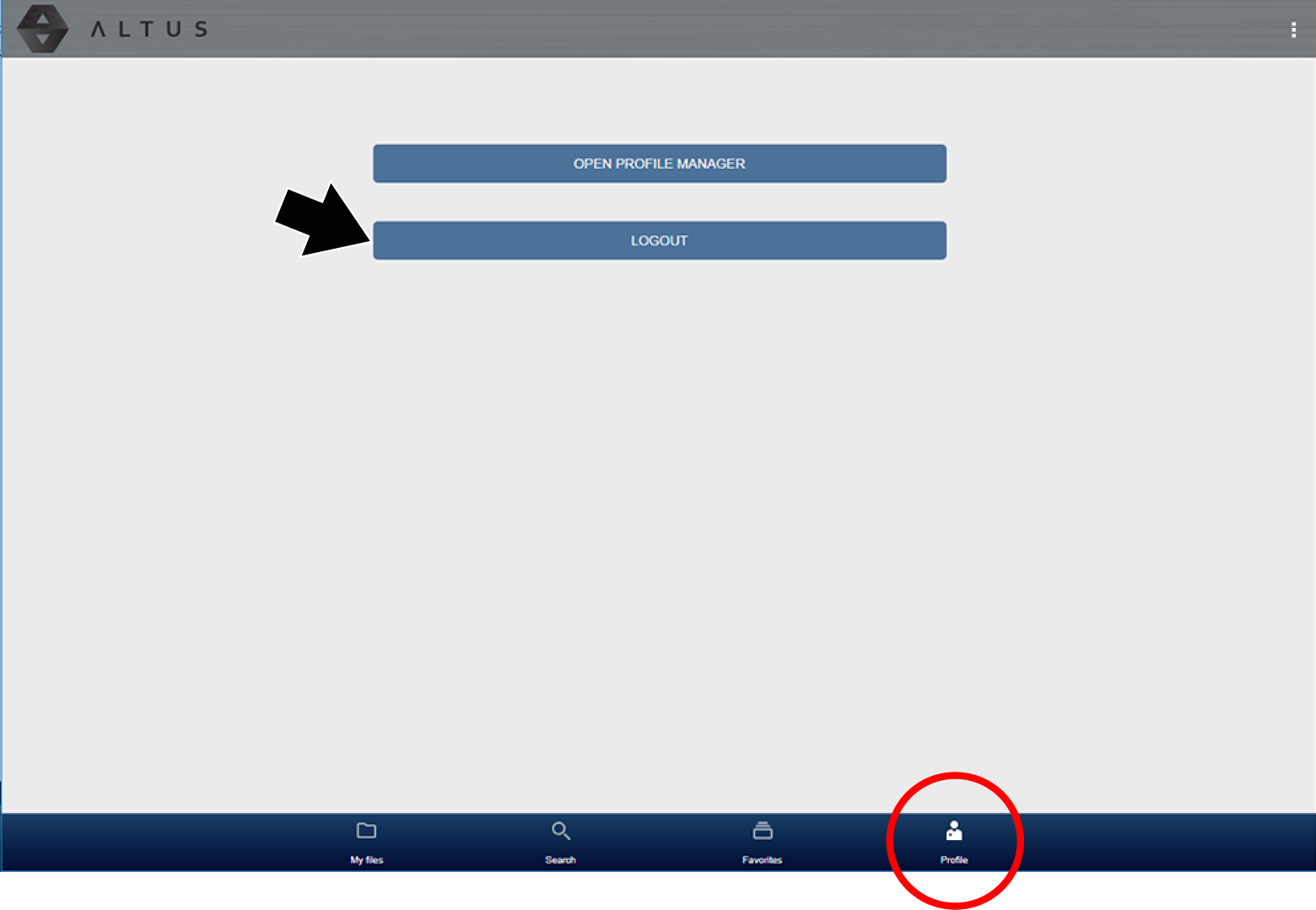 To log out of the Snap-on Cloud select Profile from lower toolbar, then select Logout.