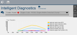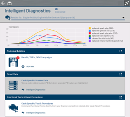 Fast-Track Intelligent Diagnostics saves you time by providing access to code related data, information, and tests, all from one screen. It allows you to quickly find TSB's, smart data PID lists, out-of-range PIDs, functional tests, Sure Track Top Repairs Graph and Real Fixes, and more all at a glance.