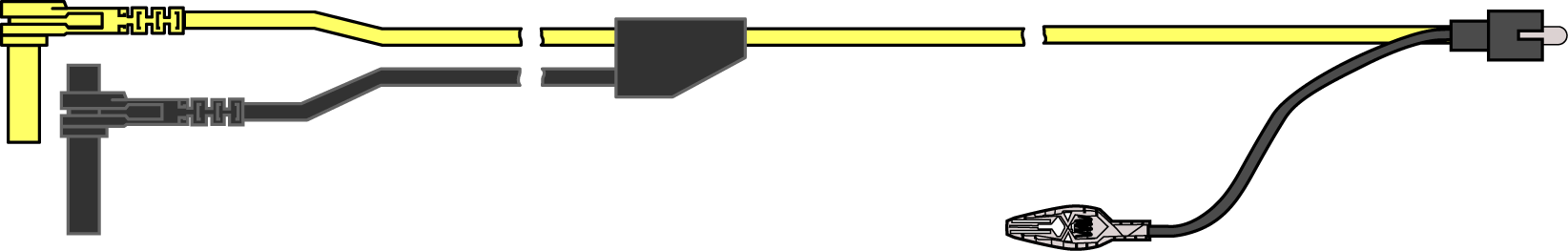 This lead also includes two black, right-angle common ground plugs. One plug is standard and the other is stackable. The standard ground plug should always be connected to the ground (GND) jack on the diagnostic tool.