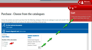 | 13. | Wybierz kartę Generic diagnostic tool (Ogólne narzędzie diagnostyczne), a następnie wybierz okres subskrypcji (np. 24 godz., 1 mies., 1 rok itp.) i przeciągnij/upuść wybrany element do koszyka. |
