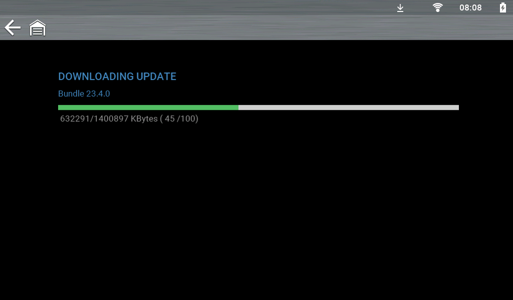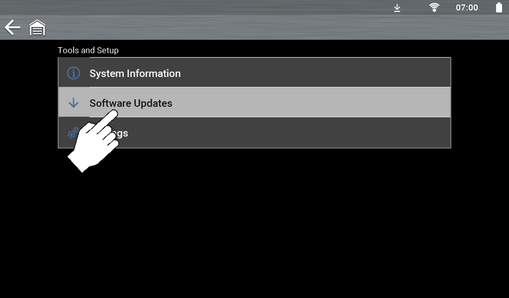 Selezionare Aggiornamenti software per avviare il download del software. La freccia giù sulla barra degli strumenti superiore indica che il download del software è in esecuzione. |