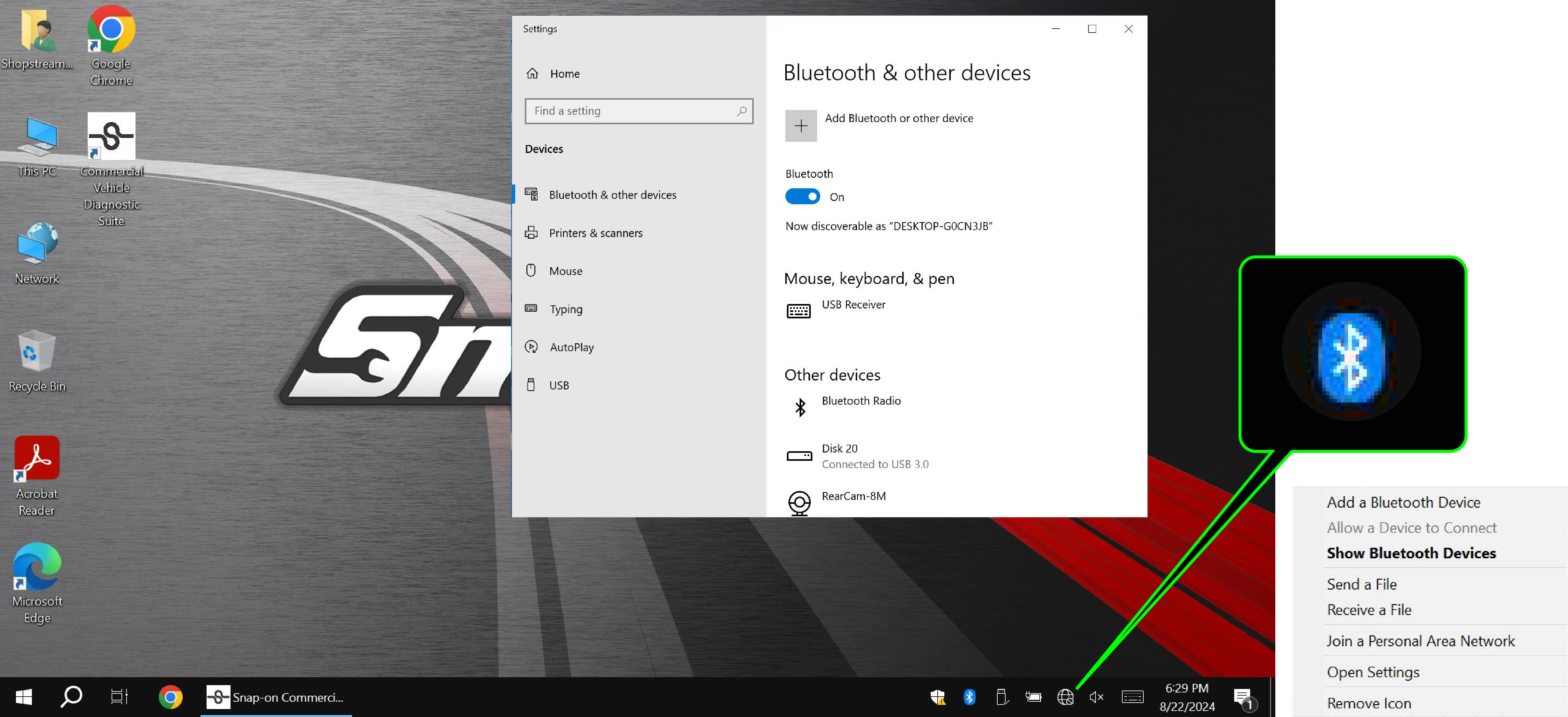 Before you scan a vehicle, the CIM must be paired via Bluetooth, or connected via USB cable to the diagnostic tool.